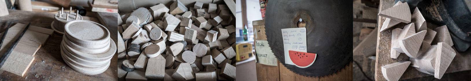 V malé dílně na Moravě vznikají dřevěné, ručně soustružené nebo vyřezávané polotovary, které dále Jitka maluje eko barvami s atestem na dětské hračky. Tvůrci se velmi těší na to, jak jejich hračky budou stárnout. Malované dortíky, nanuky a hlavně rodinky jsou totiž určeny k tomu, aby v rodině zůstávaly pro další a další generace.