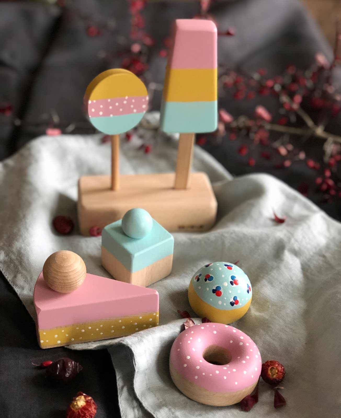 Cena za 7 kusů. Sada obsahuje nanuk, lízátko, dortík, řez a pralinku, donut a stojánek.
